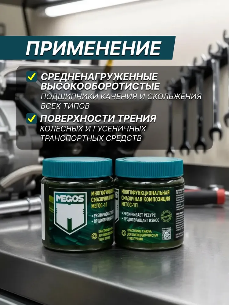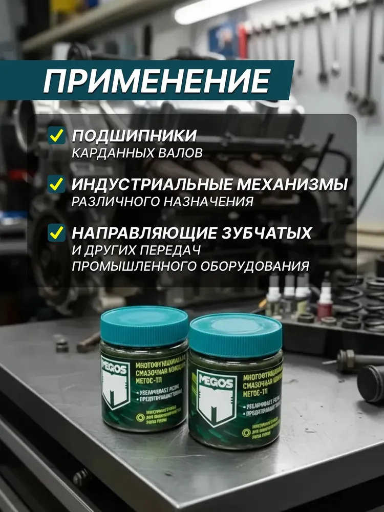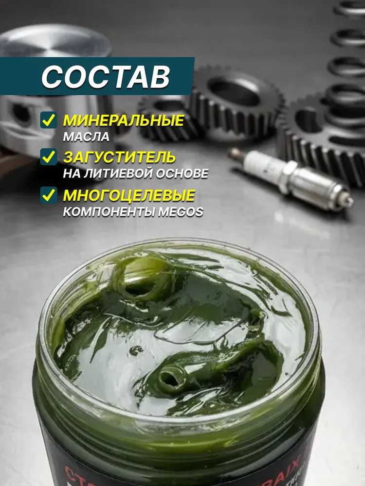 СОСТАВ: Минеральные масла, загуститель на литиевой основе, многоцелевые компоненты MEGOS